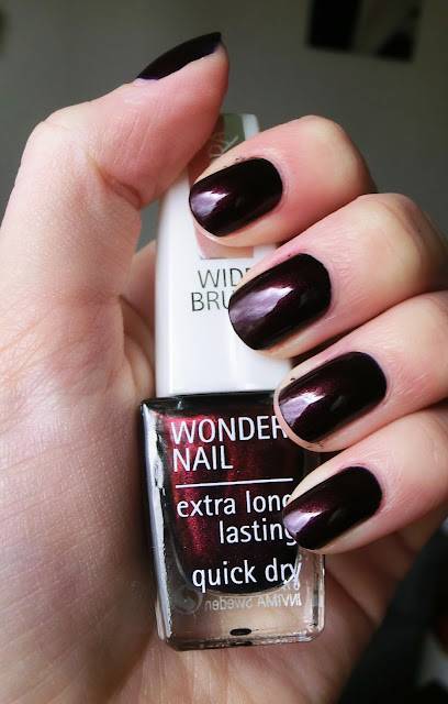 Translation: Today I'm wearing Isadora's Ancient Ruby. It's a dark purple with himmer in dark red, gold and purple. It might be a dupe to OPI's Every Month Is Oktoberfest, but I'm not sure since I can't find my bottle. But from memory they look the same to me, both on the nail and in the bottle.